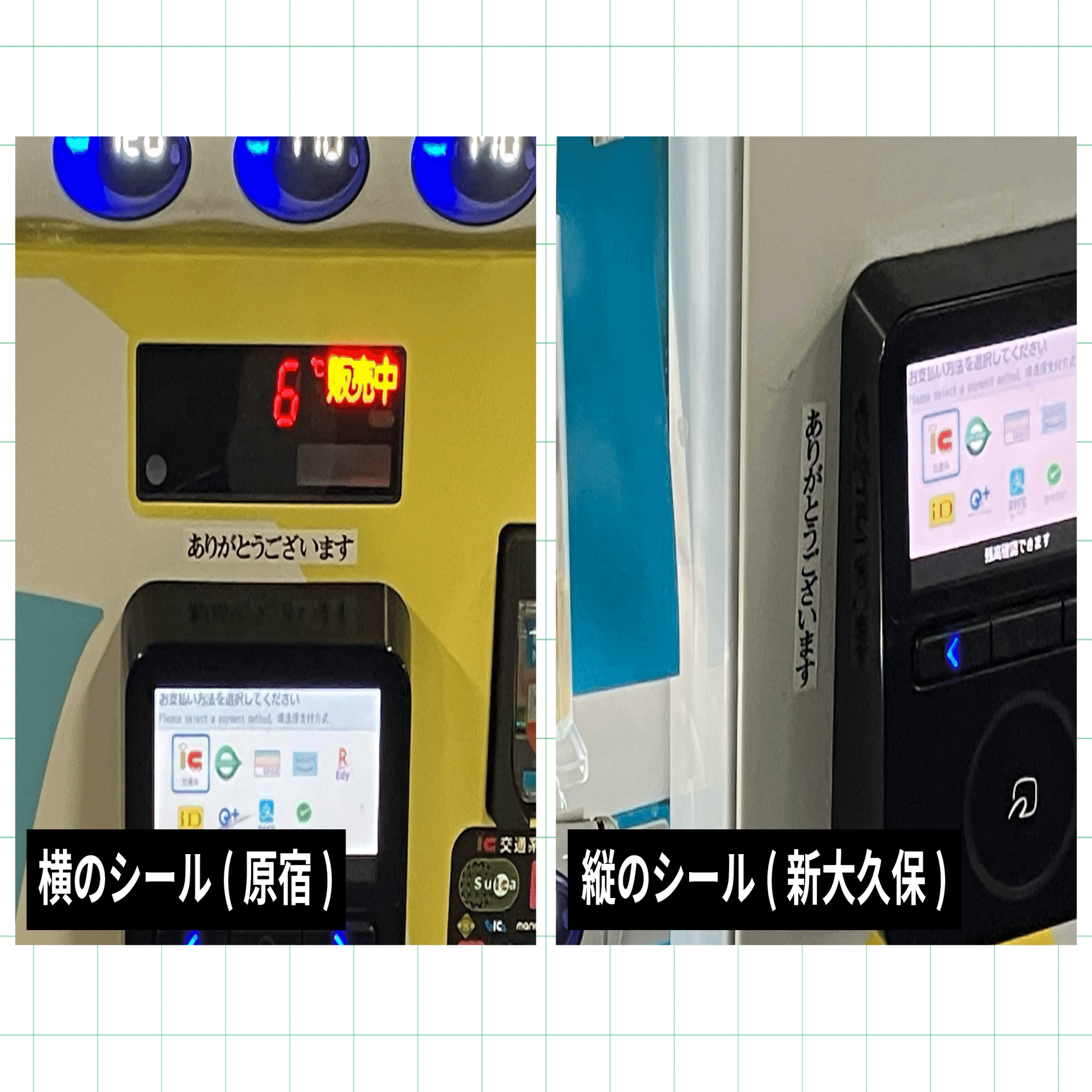 1台の自販機に2枚のシールが貼られている。