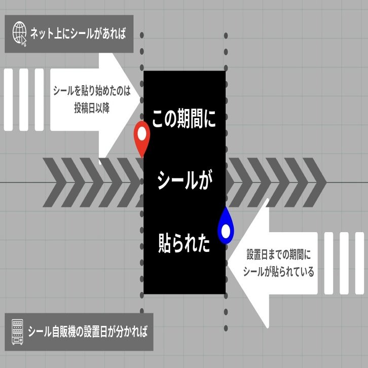 シールのある自販機の設置時期を知ることができれば、少なくともその設置時期より後に貼られていることがわかる。