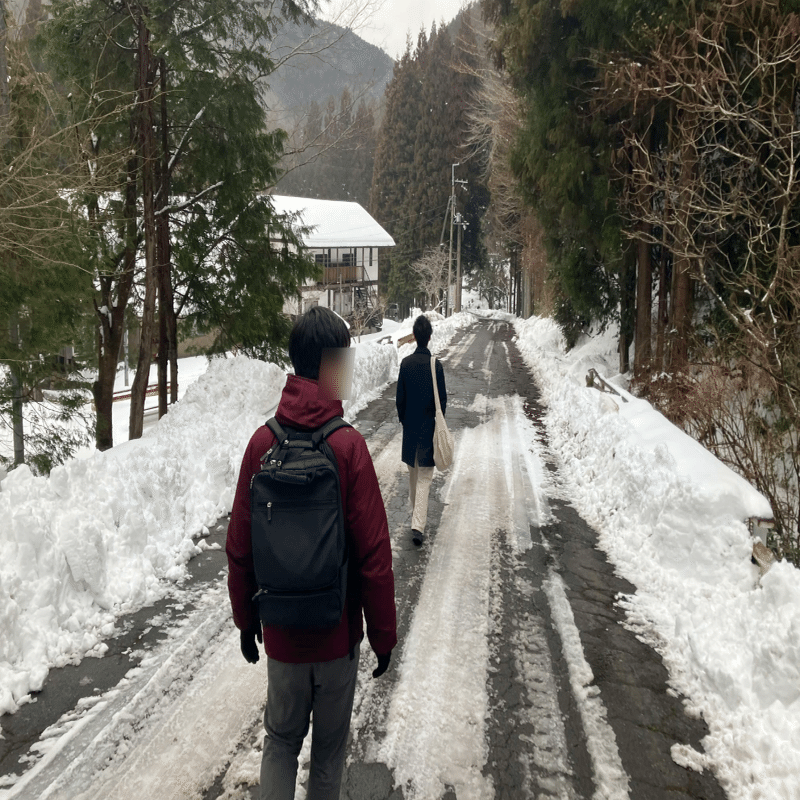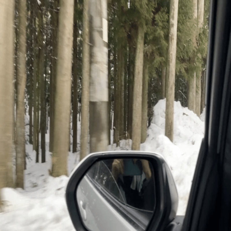 車のスタックが怖くなってきた。目的地まで800mほどの地点で車を止め、そこからは徒歩で向かうことにした。間違えて普通のブーツで来てしまったので凍った道がつらい。