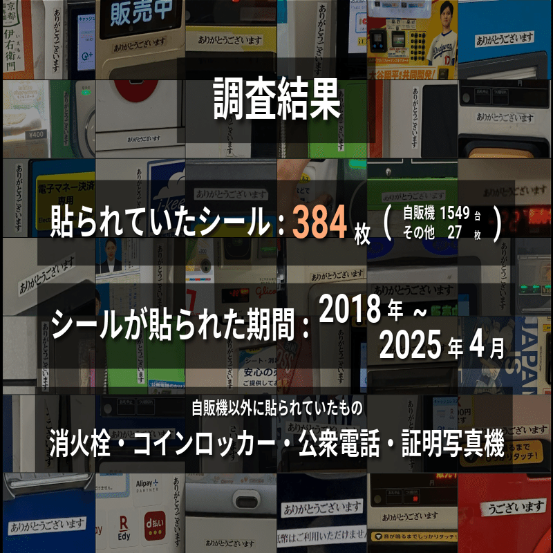 しかし、ありがとうボランティアグループは東京や博多、名古屋の自販機に貼られていたシールに直接の関係はしていないと考えられる。