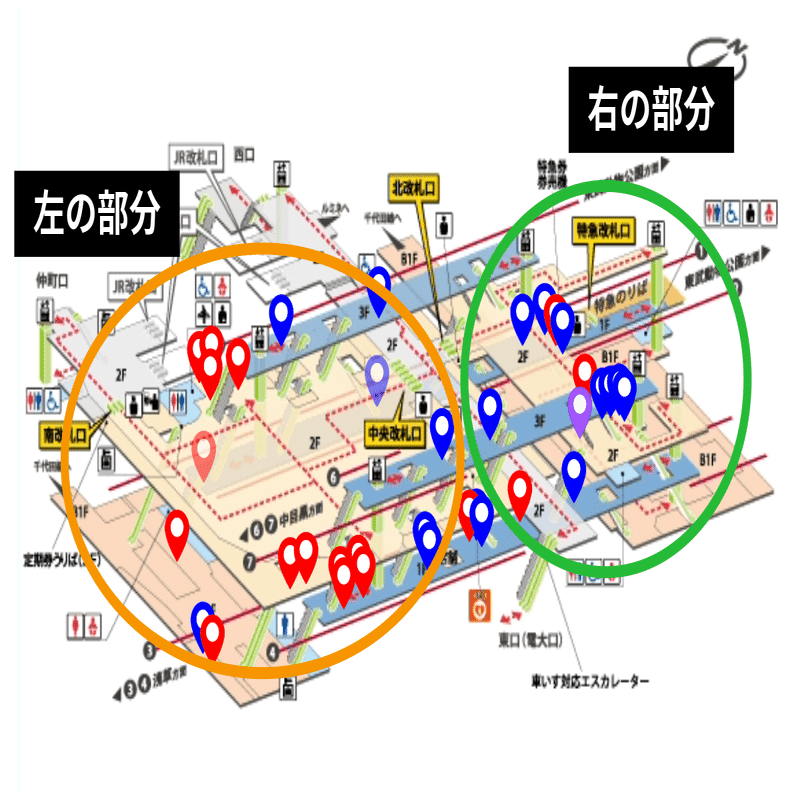 やはり池袋や新宿といった巨大な駅が目立つ。