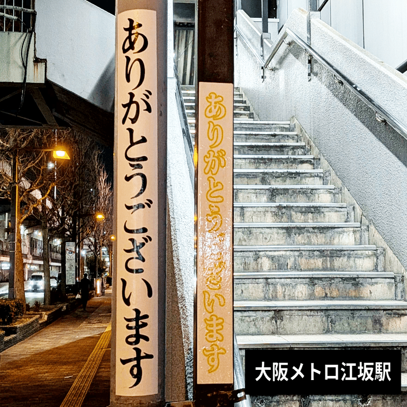 メールに書かれていた通り、江坂に貼られていた大きなカラーのシールは、ありがとうボランティアグループに関係のある人が自主的に制作したものだ。