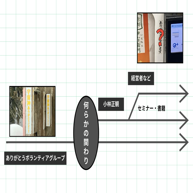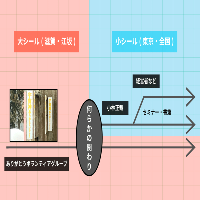 小林氏がシールについてどの程度言及したのかは不明だ。しかし、経営者とありがとうボランティアグループの間に直接的な関係が見られないことから、小林氏が何らかの形で話しているというのは間違いないだろう。