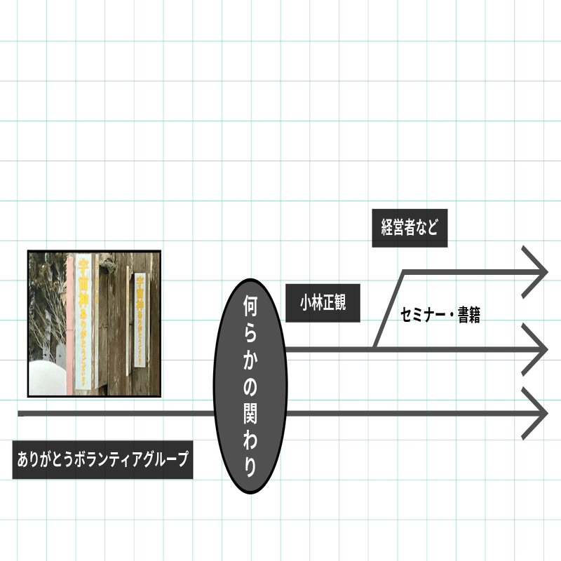 小林正観はありがとうボランティアグループを参考にした上で、自らの教えを広めていた。なおメールのやり取りから、グループは小林氏の活動について把握しているわけではないと思われる。あくまで小林氏個人の活動なのだろう。