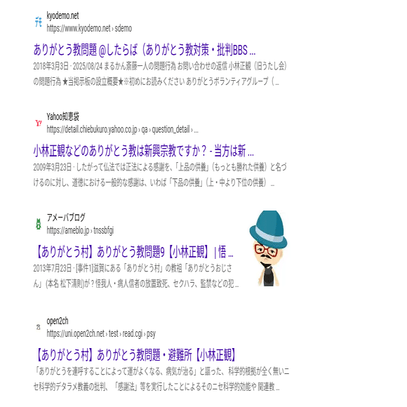 メールで話を訊きつつ、「他のありがとうを広めているところ」というのを見つけるためにひたすらネットを調べ続けた。すると、「ありがとう教問題」というものを取り扱っている2chのアーカイブが複数見つかった。