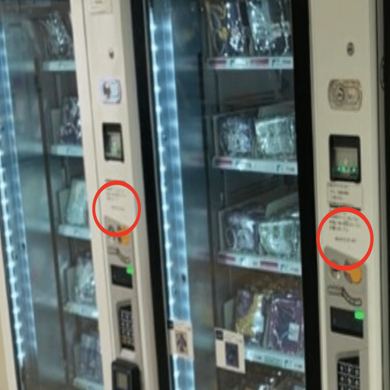 この商品が発売され、ラッピング自販機が設置されたのは2025年4月以降。で、そのあとにシールが貼られた。