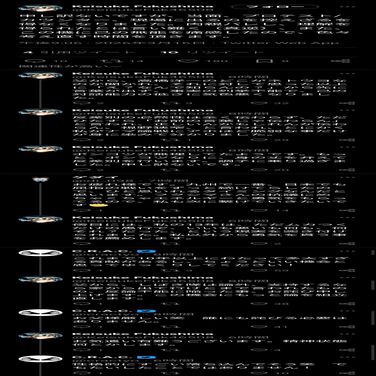 何この茶番?このコメントをしてるのが本当に野間易通だったとしたら全身の力が抜けるわ。 身内に甘くて中身空っぽのインチキ教祖。