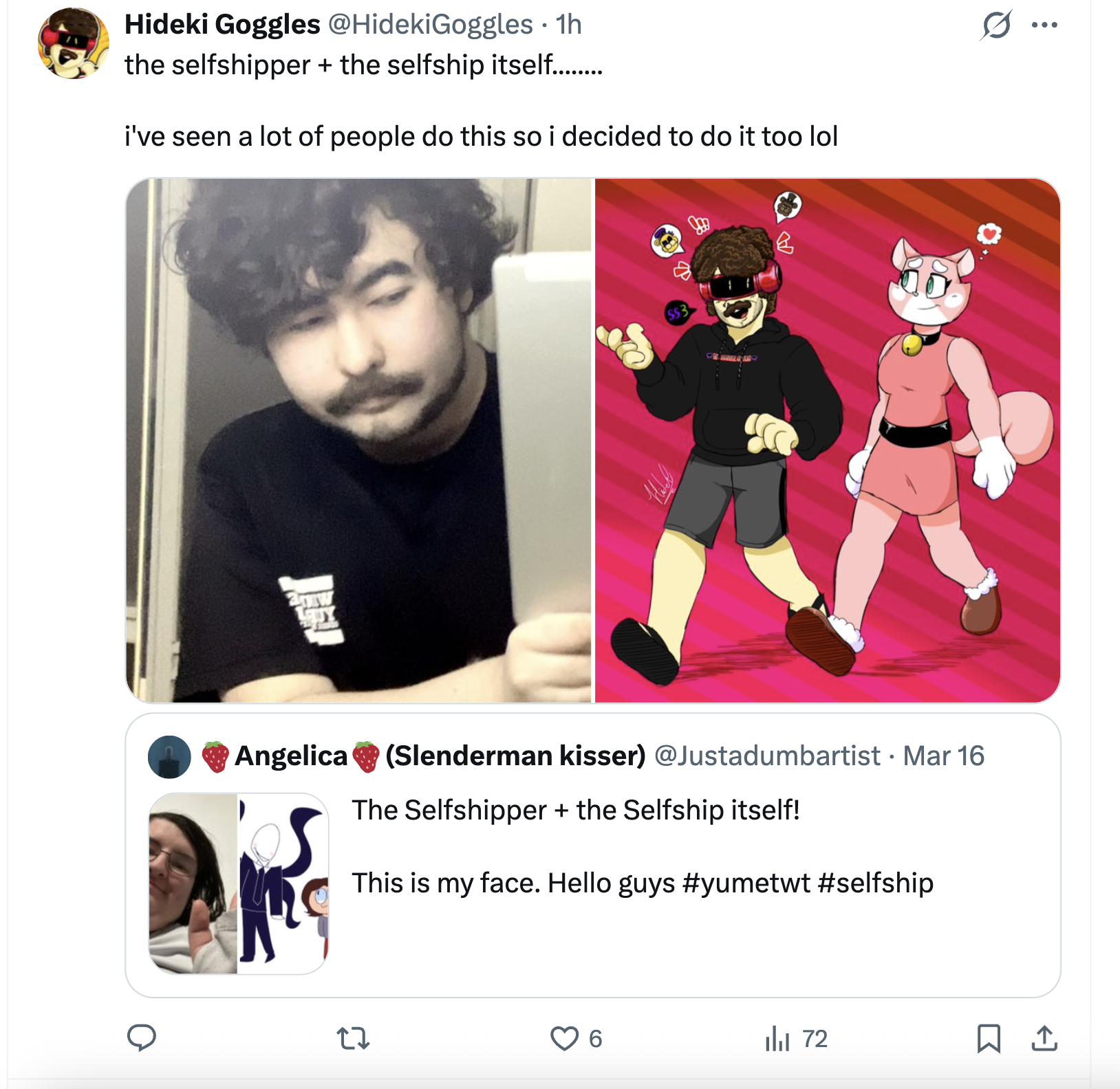 There's a xitter trend of autistic foids and trannies posting pics of themselves in love with literal cartoon characters and it's as geggy as you would expect