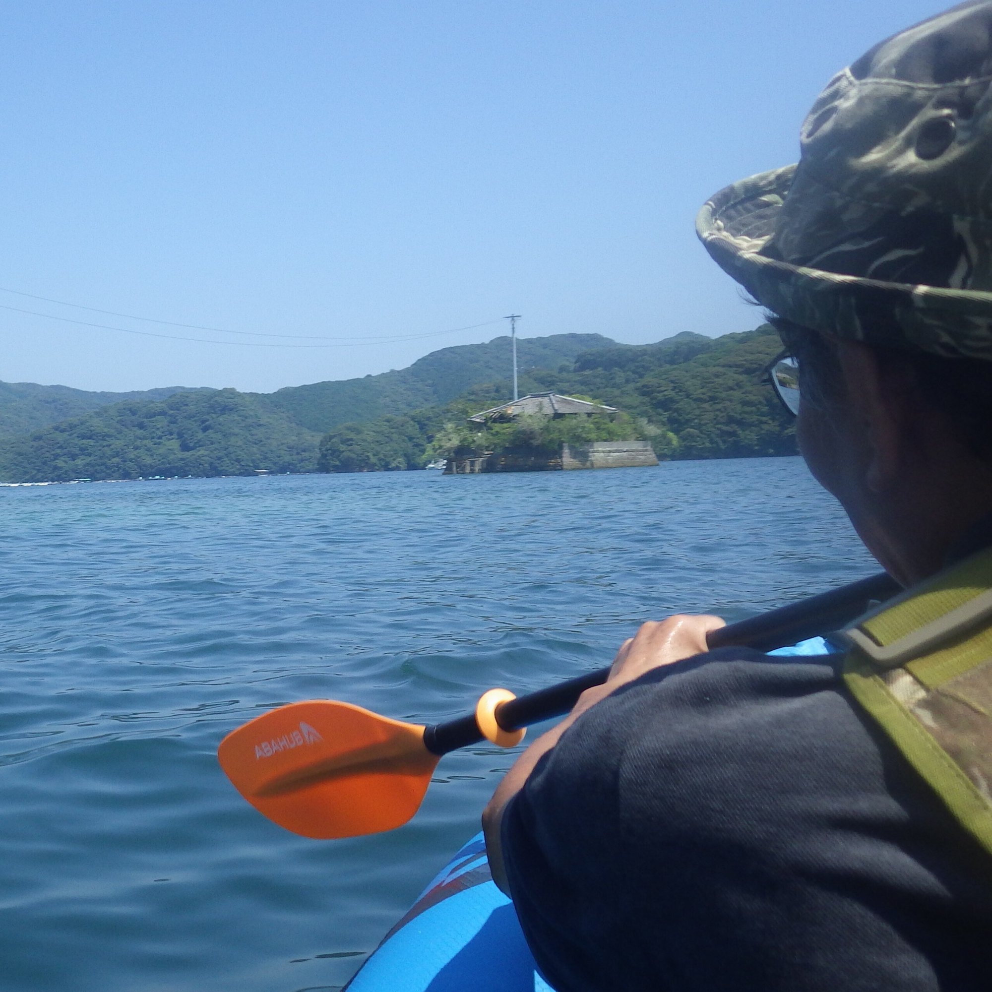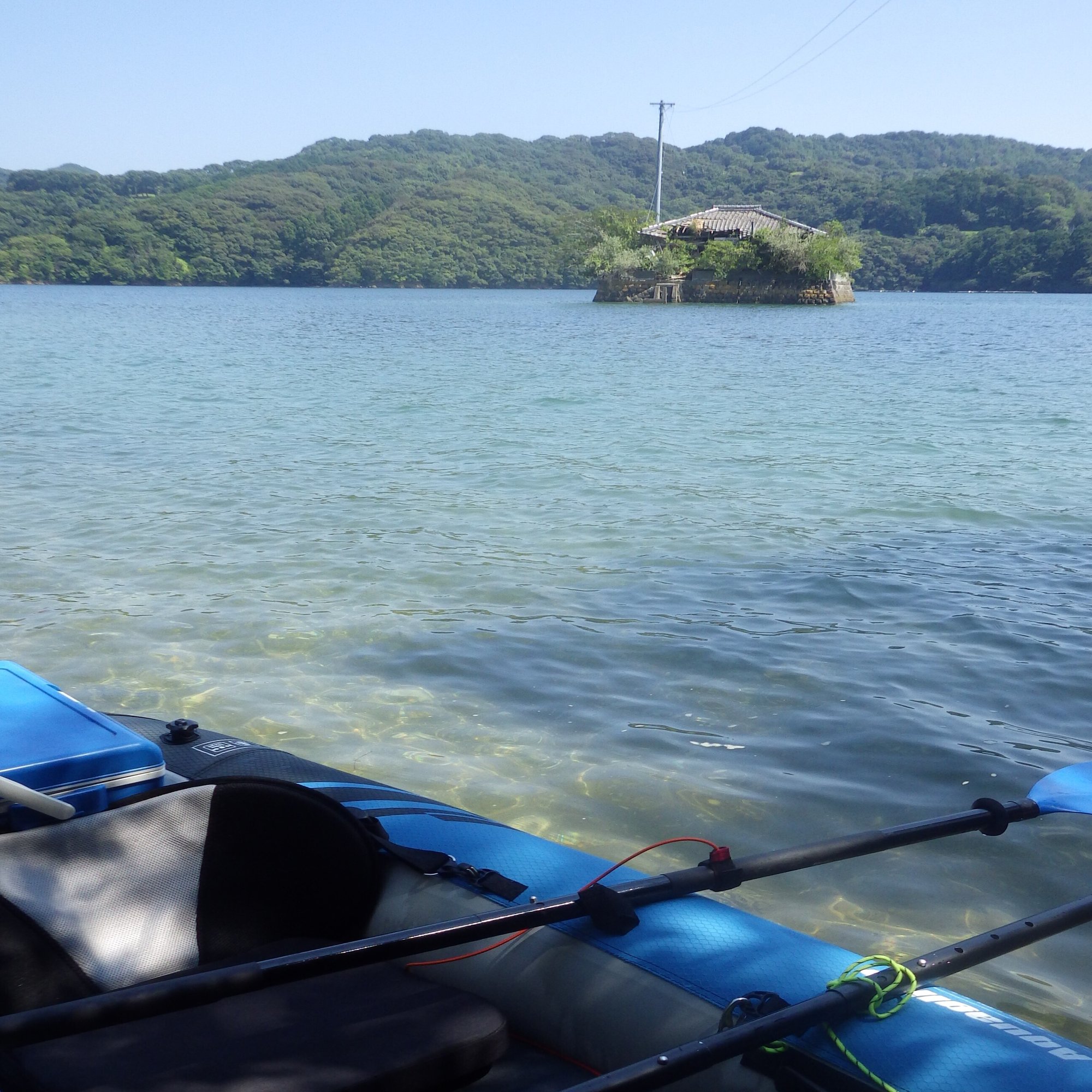 近くの漁港からシーカヤックを漕ぎ出し、謎の海上廃墟に向かった。