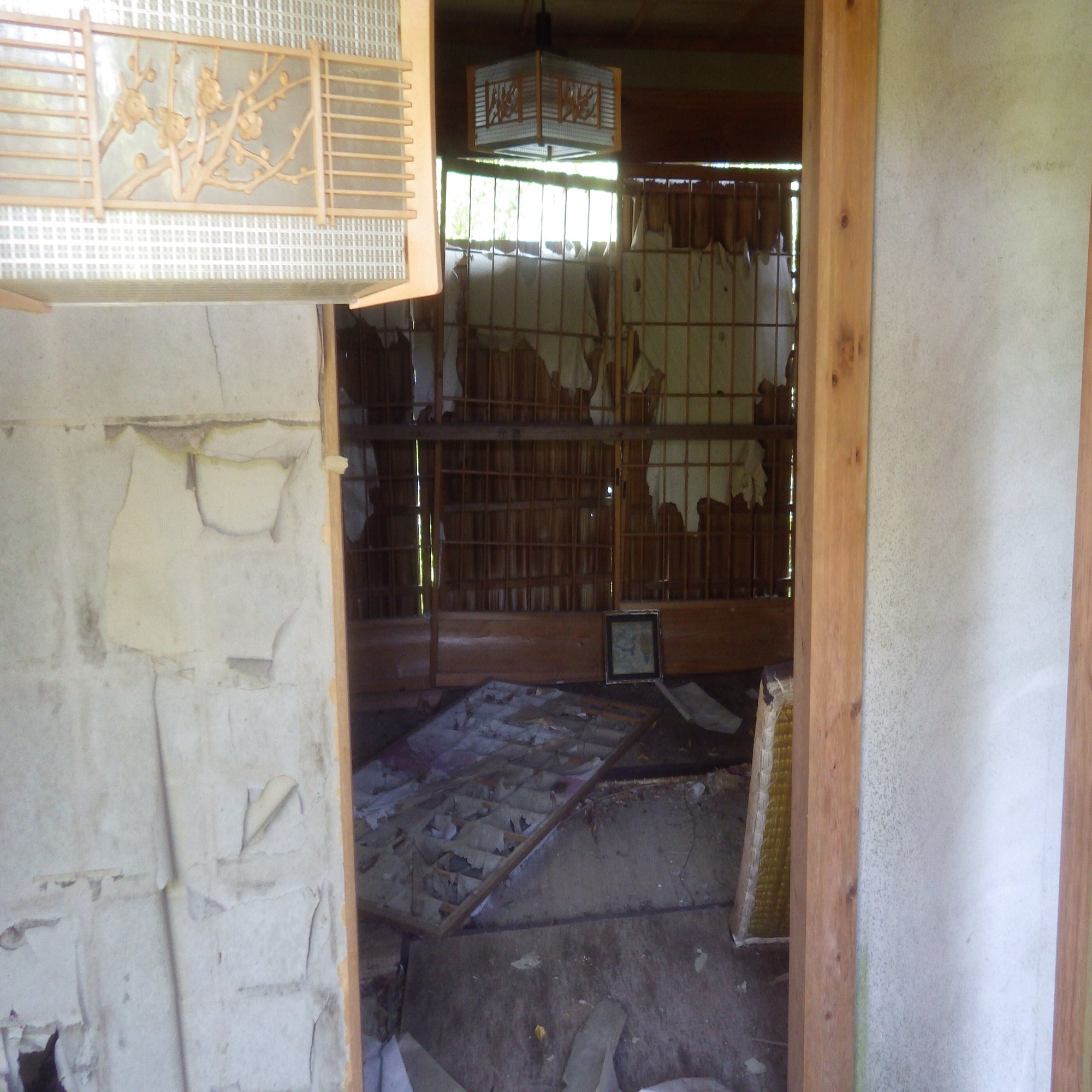 まさしく廃屋だ。廊下の床板ははがれ、十畳ほどの和室は見事に朽ち果てている。畳は腐り、障子は破れ、雨戸は吹っ飛んでいる。建物は何とか形を保っているものの、内装はすさまじく荒れている。