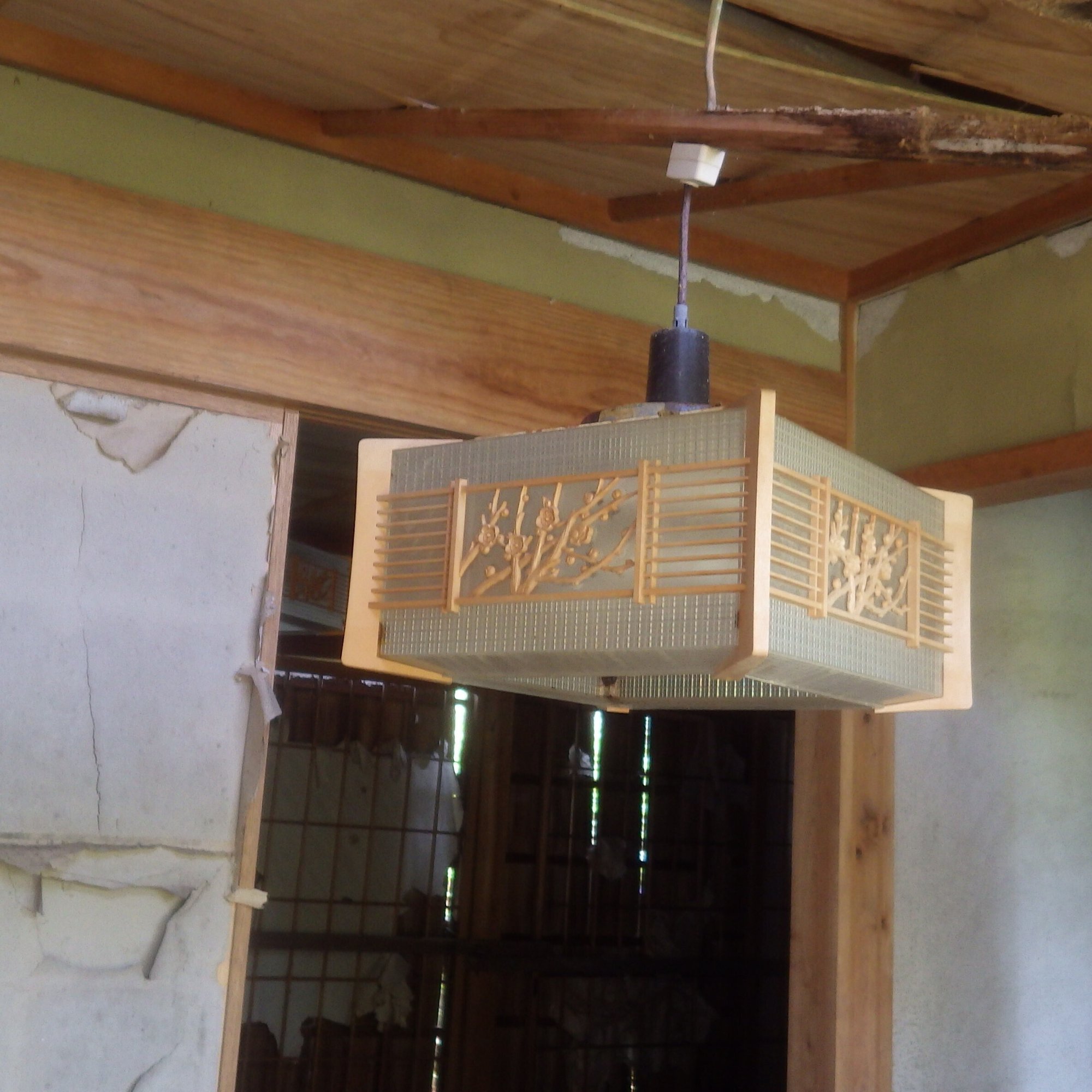 四方にガラスがはめ込まれ、梅の花の飾りがある。こんなレトロな道具は久ぶりに見た。昭和40年代から50年代にかけ、私の家にもあった気がする。