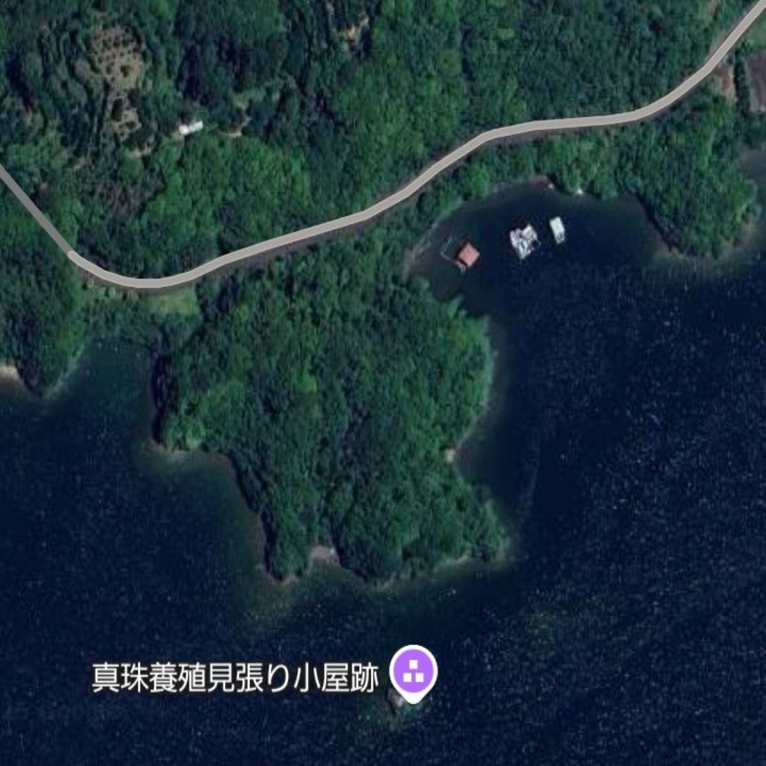 不可思議な廃屋は、入り組んだ湾内に突き出した岬の先にある。海岸沿いに道が通っているものの、島の対岸は深い森になっている。道路と島は直線距離で約300㍍も離れており、陸路で近づく方法はない。最初から人間の接近を拒んでいるようだ。