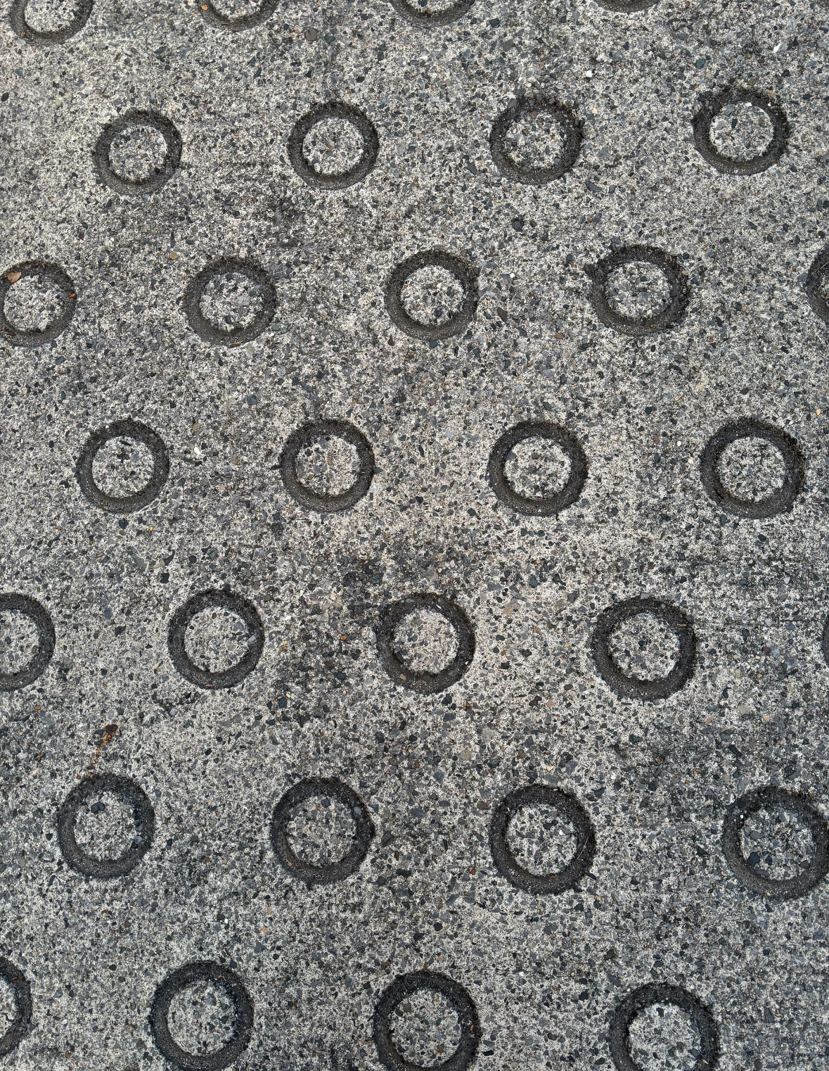 ぜひリンク先に飛んで読んでほしいのですが、なんと平らにならしたコンクリートの上に、たくさんの「Oリング」という道具を等間隔に置いて、あとで取り除くことであの模様ができるそうです。