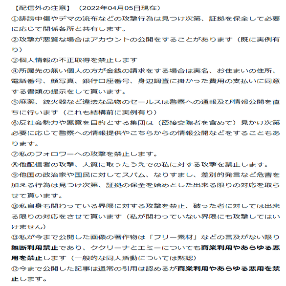 常日頃さくらみこファンからの攻撃を受けていましたがここ最近は犯罪行為をしてまで私を追い込もうと躍起になっていたことや(今回訴える人物に関して言えば)煽動の旗印になっていたこと、私に関することで極めて悪質な嘘の情報を流され続けたのでこの度は特に悪質なさくらみこファンを訴えることにしました(訴える対象の人数は非公開)