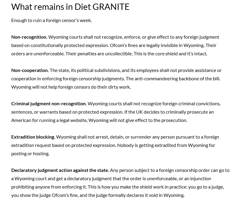In the name of more content, here's what 4chan lawyer is putting together and trying to pass at state level. Originally it included ability for US citizens to sue foreign govn't (nice idea... unworkable in practice imho.)