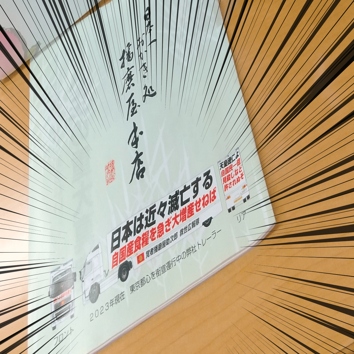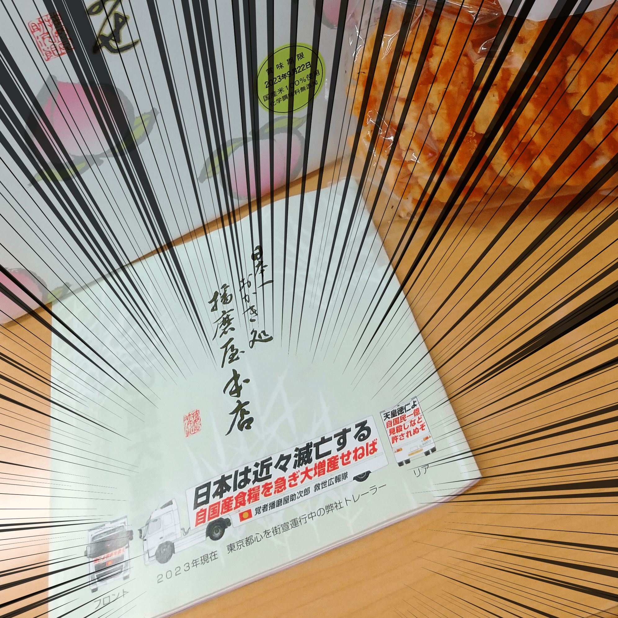 このおかき屋は一体なんなのか? 問いかけてみたところで、色々なところがギリギリな街宣車の写真は何も答えてくれない。