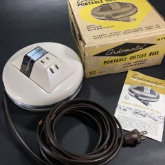 受話器に付属しているコードは、当時物ではなく、伸縮自在で最も便利な新品の現代の新品(ビンテージモデルリプロ)黒色コイル・コードに交換されております。ホームセンターなどで販売している平線のコイル・コードとは異なり、一応、1940年代当時のオリジナルのコイル・コードを意識して、ビンテージの電話用にアメリカにて作られた、太く丸いコイルコードとなりますので、雰囲気は当時と変わらず、劣化も無いうえ、光沢があるためメッキボディとの相性も抜群です。