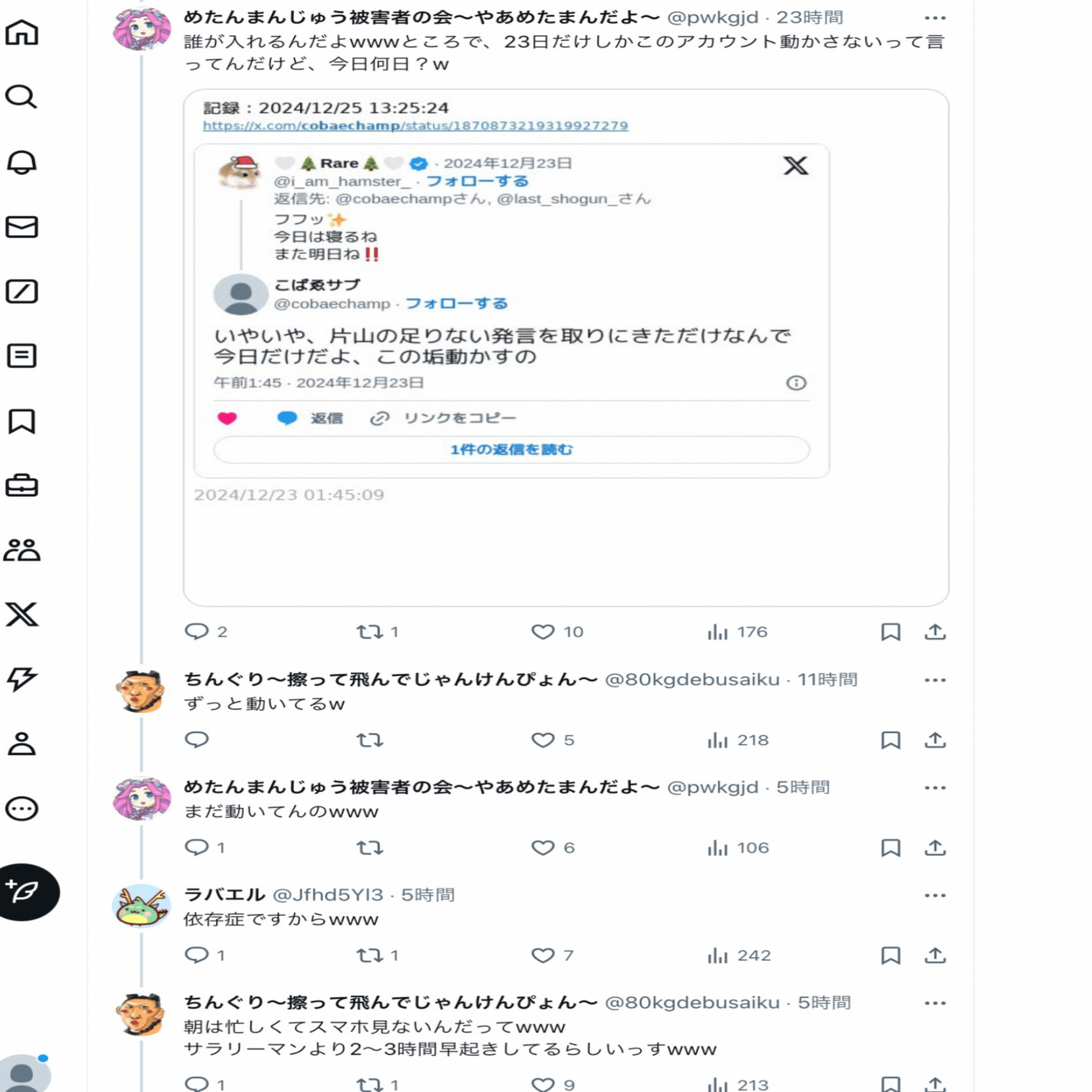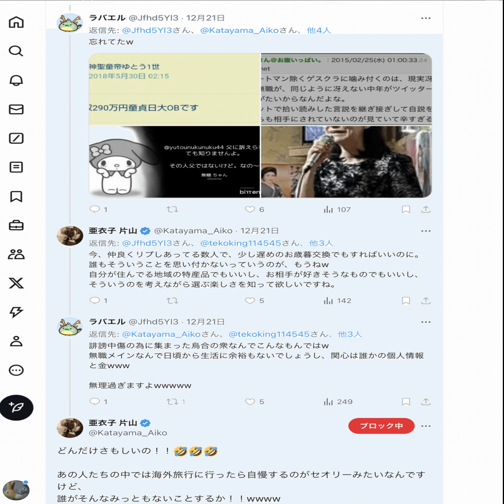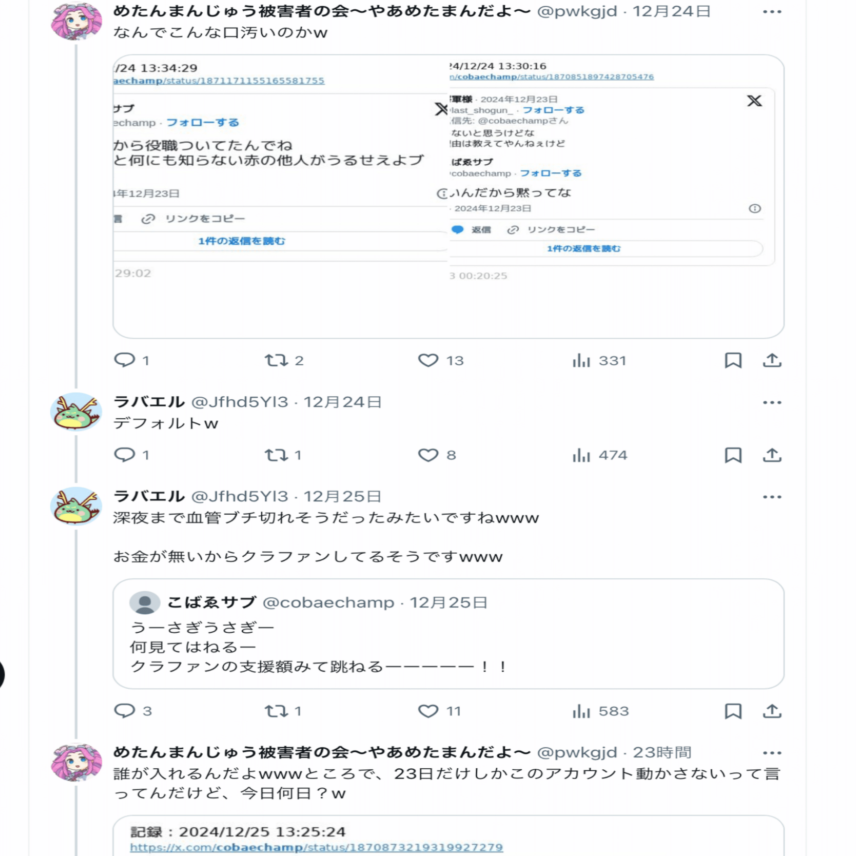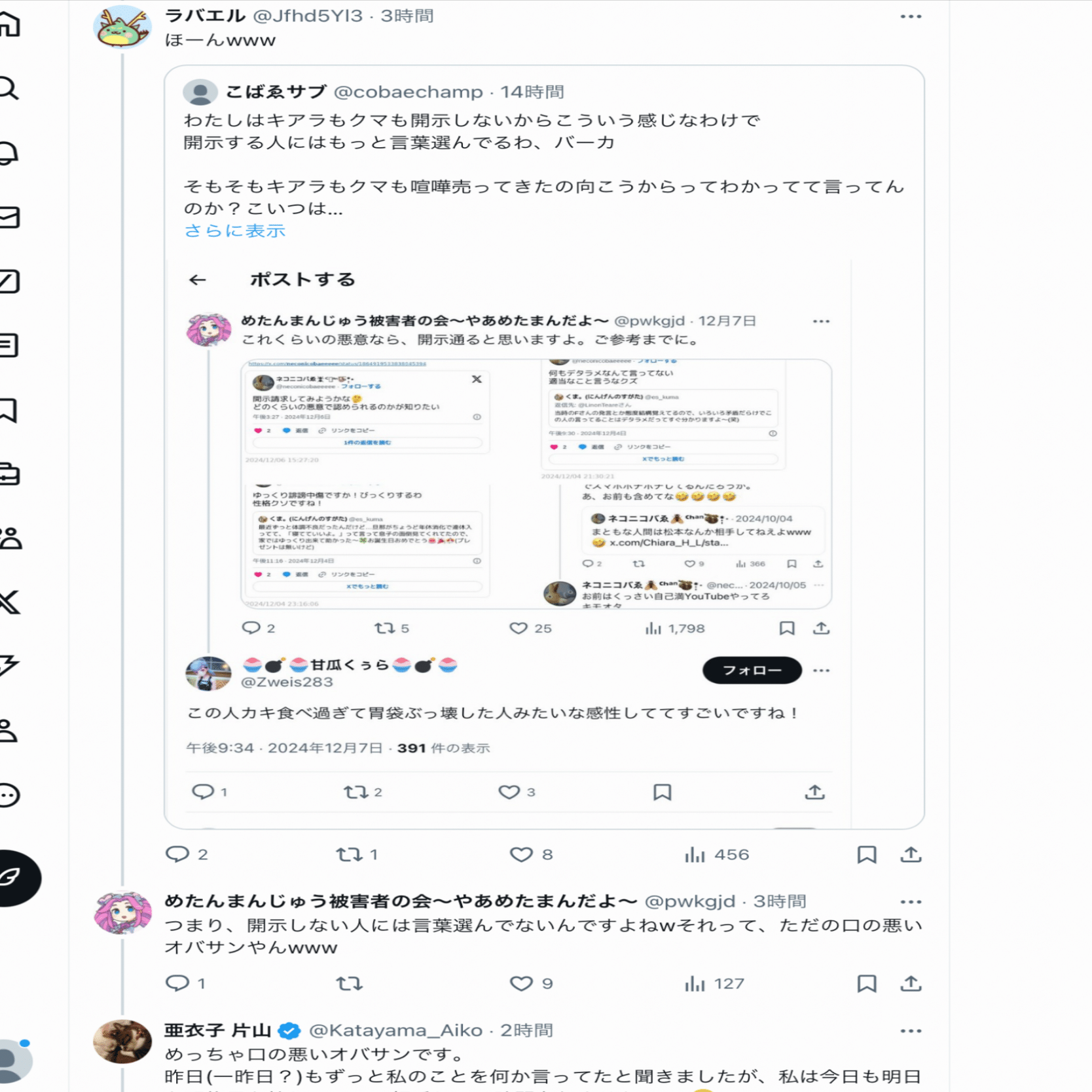 本人曰く【何も言ってないのにいきなり絡まれた】らしいし、酷いこといっぱい言ってることを自覚していただきたい