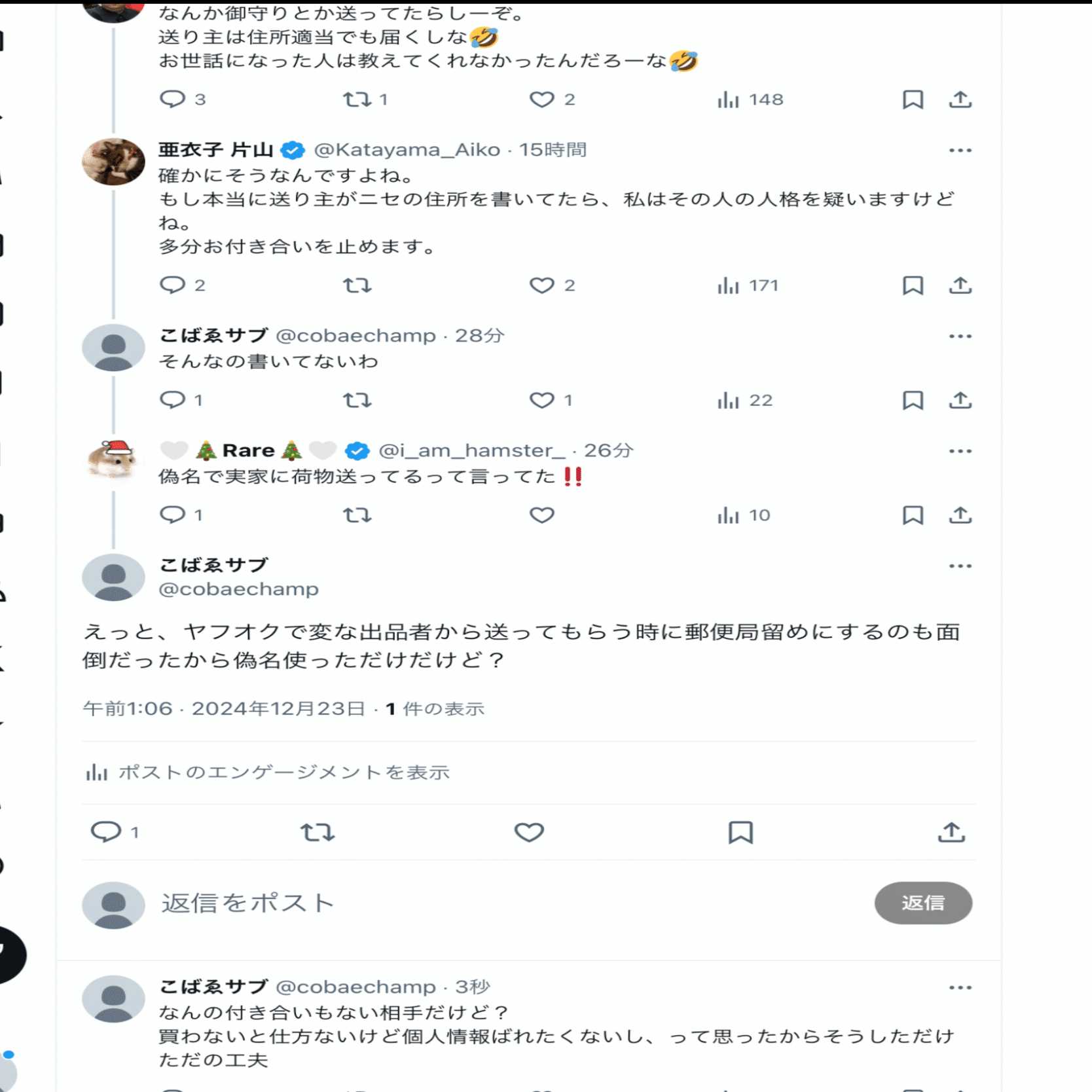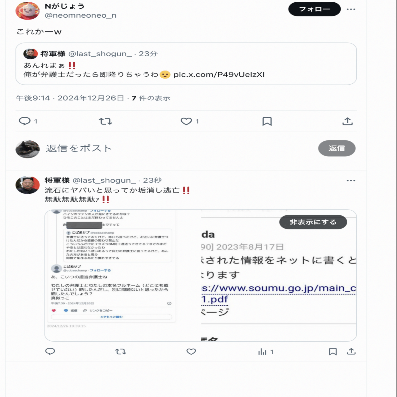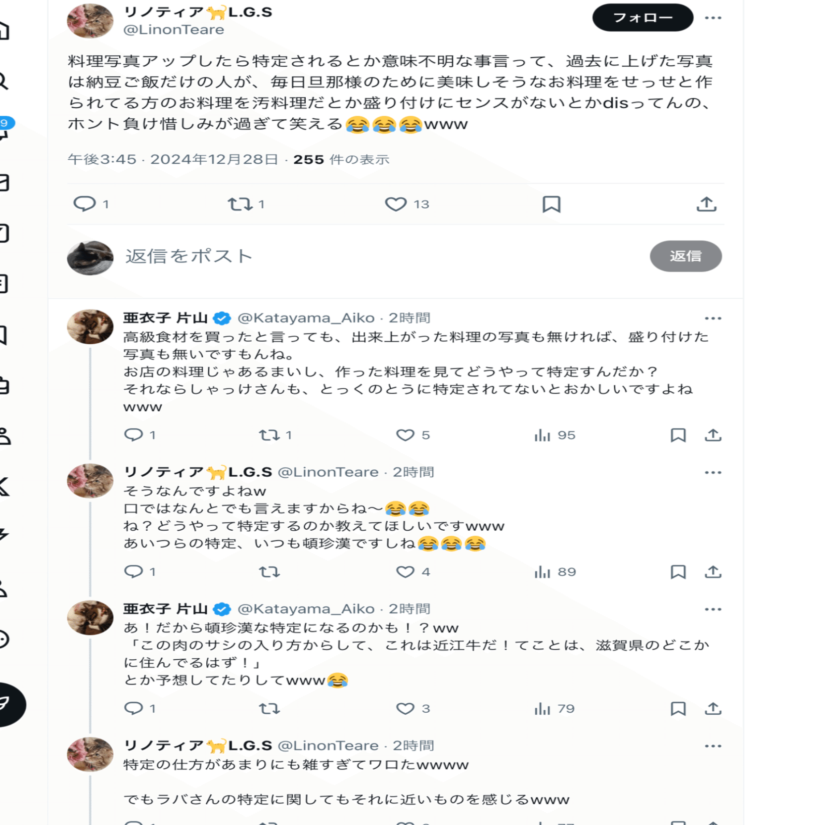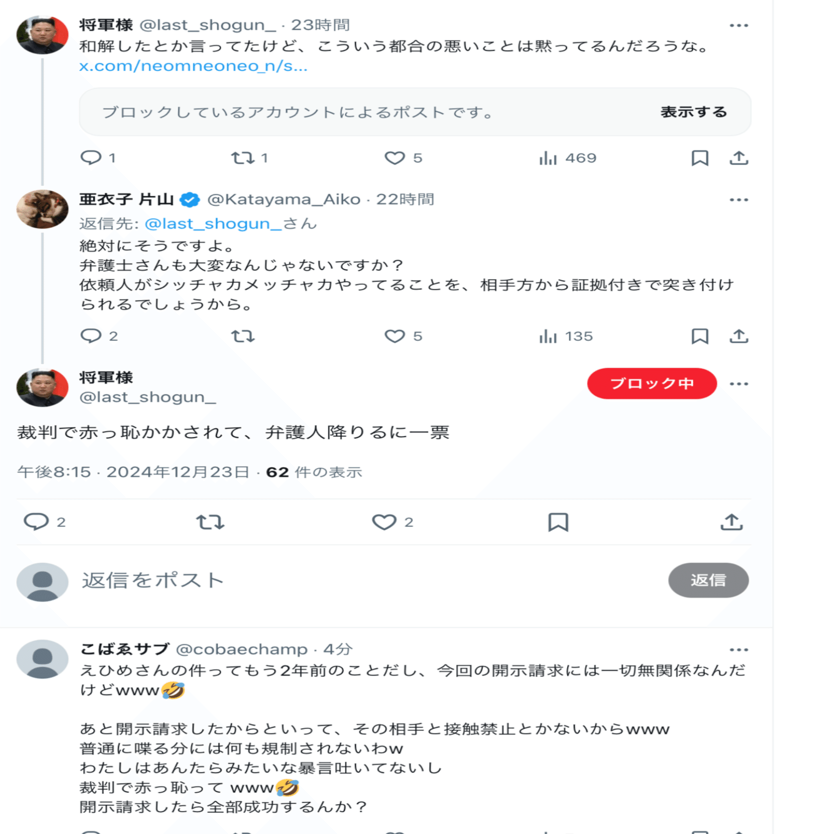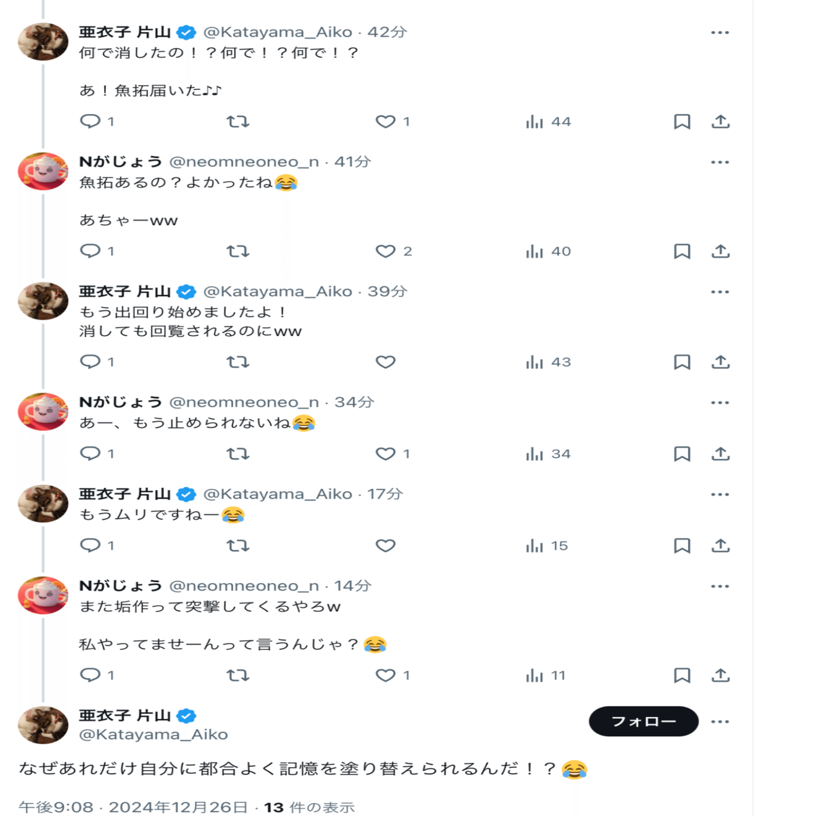 本人曰く【何も言ってないのにいきなり絡まれた】らしいし、酷いこといっぱい言ってることを自覚していただきたい