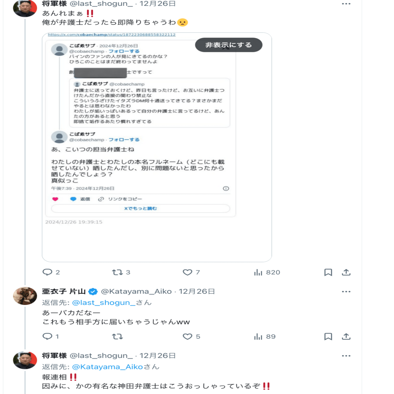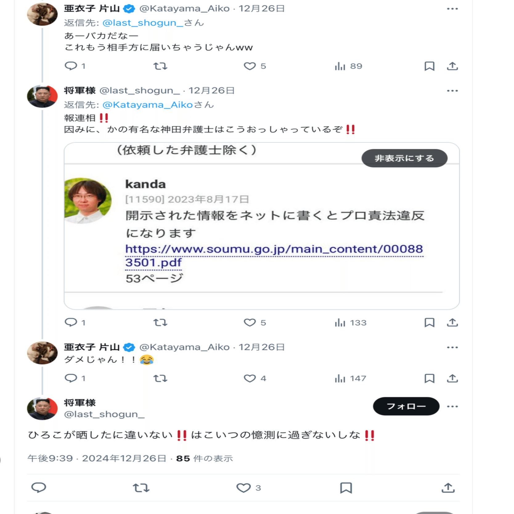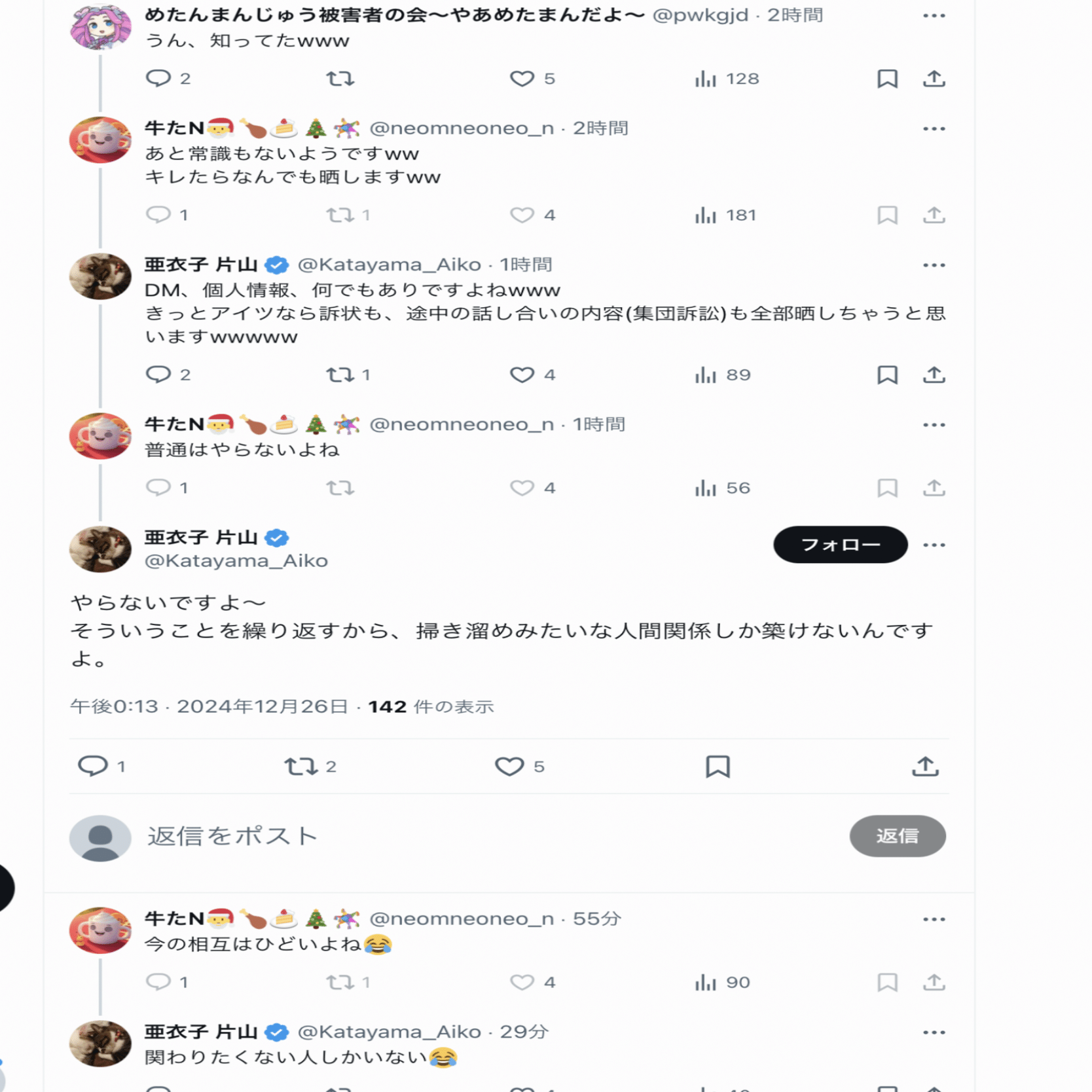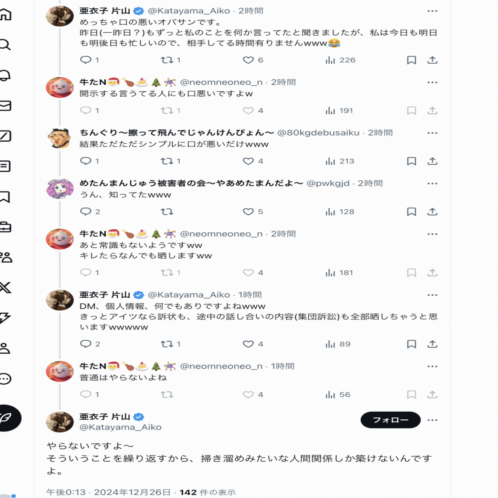 2025年分の片山の暴言スクショ、まとめるか〜
