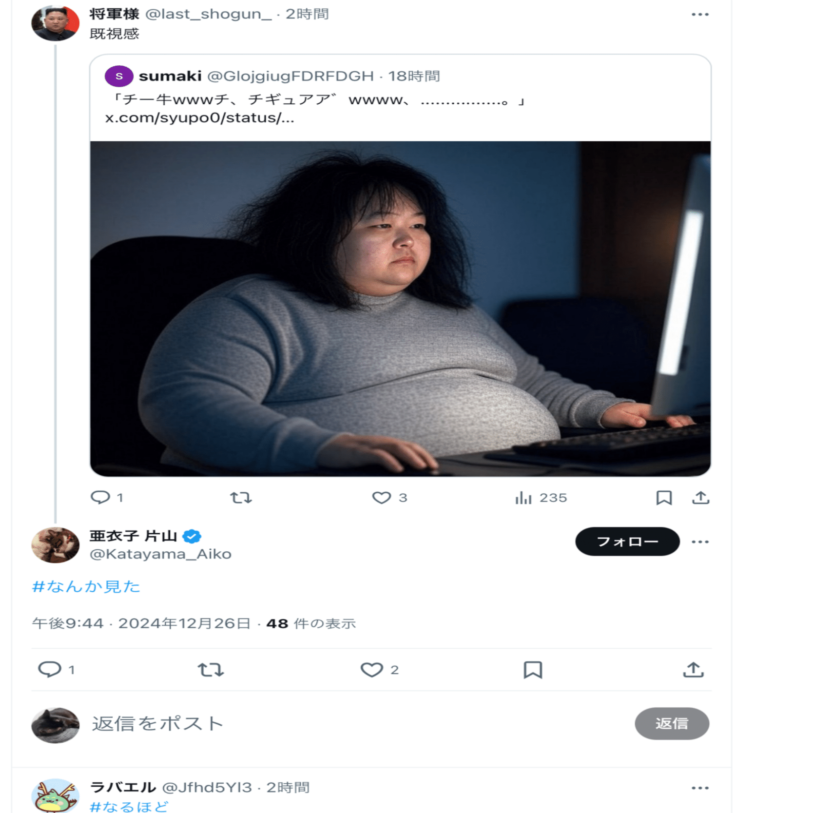 しかもわたしは当時片山の発言のスクショを撮るつもりはなくて、しゃけやラバエルらのスクショを撮ってただけだ