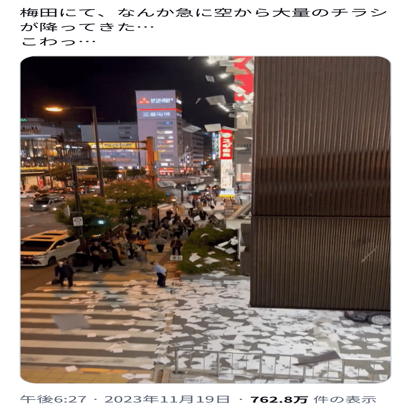 2023年11月19日、梅田駅前の大阪阪急ホテルの窓から集スト界隈のビラが大量に撒かれるという衝撃事件が発生しました。この事件の犯人は「楯の會」という集スト系団体のメンバーでした。なぜかは知りませんが日未会と仲が悪いらしく度々小競り合いを起こしているようです。豊饒の海を漂う三島も脱力していると思います。