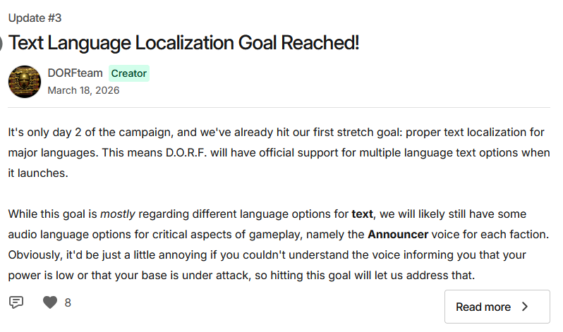 Also worth noting that DORF is literally few guys in a shed where others so far are corporate “indie” slop