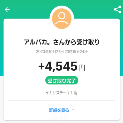 4545円頂きました。ありがとうございます。