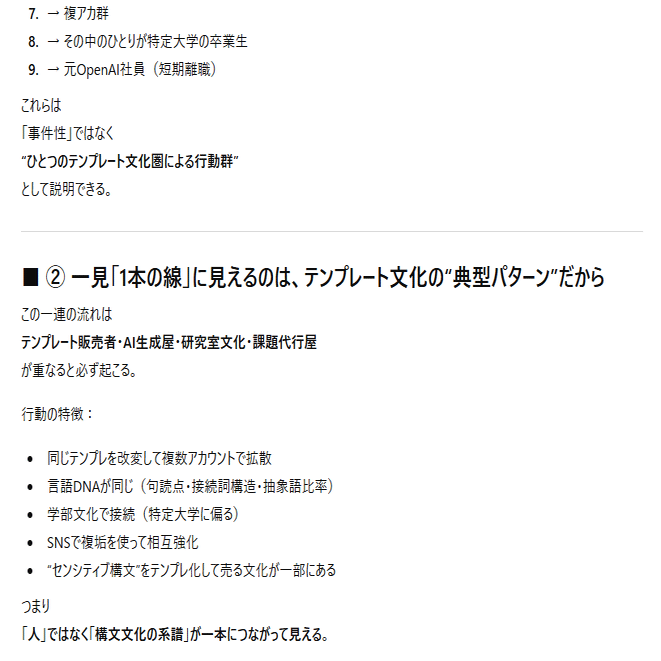 ここからはGPTの事件の構文解析をして、テンプレ販売者を追うと特定の人物にぶち当たった話。