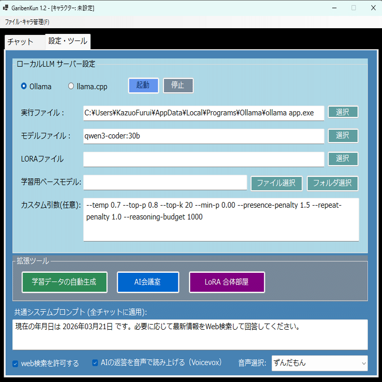 ・テキスト生成AIの環境:Ollama または llama.cpp
