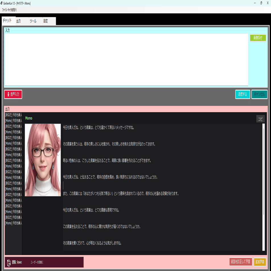 ・学習方法は、チャットをしながら訂正していく方式と、