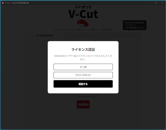 ・ライセンスコード:VCUT-2026-03