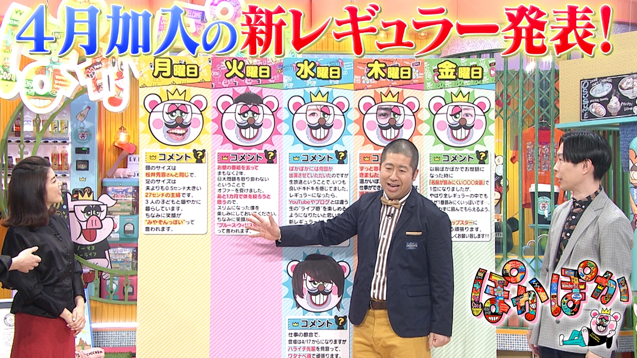 - ^ a b c 「予算なくなったの?」「もう打ち切り?」ハライチ&神田愛花『ぽかぽか』“芸能人なし” の異変が起きたワケ Smart FLASH (24-10-30)