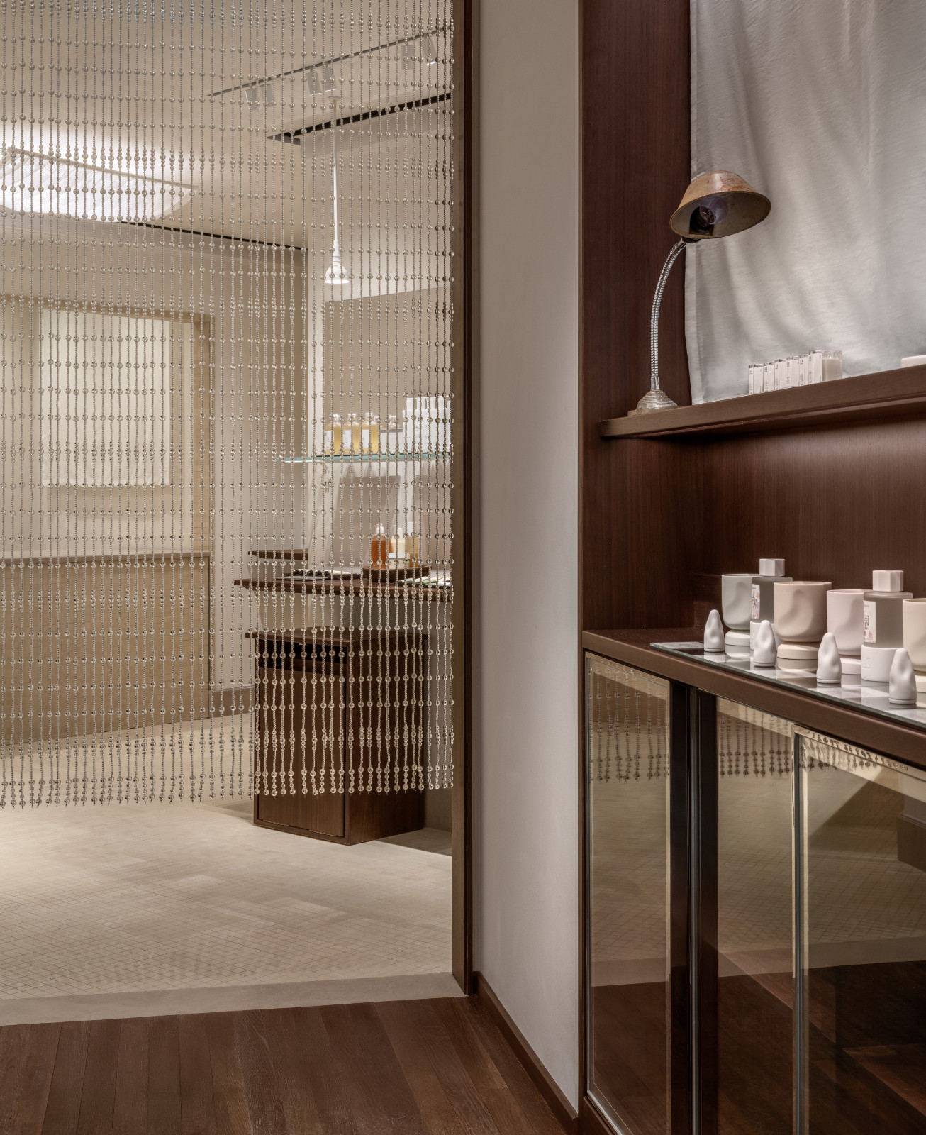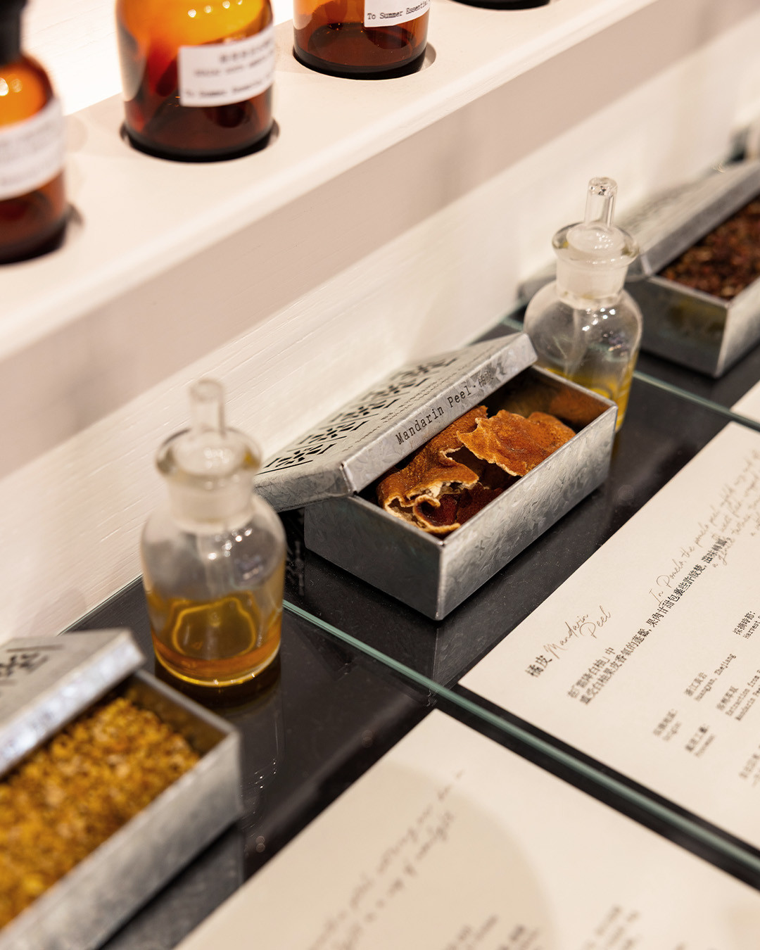 To Summer’s principles stretch beyond merely crafting fragrances—the idea is to reimagine the traditional Chinese perfumery and celebrate tradition. The brand’s first Hong Kong boutique, set in a 1958 shophouse on Yun Ping Road in Causeway Bay, pays homage to local architectural heritage through its design elements. The galvanised iron shop sign echoes Hong Kong’s old streetscapes, where the material was once commonly used for security grilles, letterboxes and decorative screens. Inside, beaded curtains and antique-style floor tiles evoke the interior design aesthetic that was once popular among Hong Kong homes.
