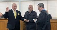 Rotterdam Town Supervisor John Polimeni is sworn into office in the Town Council Chambers on Jan. 1, 2026. From left: Polimeni, Jim Barrett and Judge Michael Godlewski. (Provided photo)